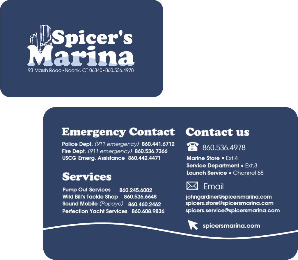 This business card re-design needed to be simple, yet informative for the customers regarding services the Marina offers on-site.